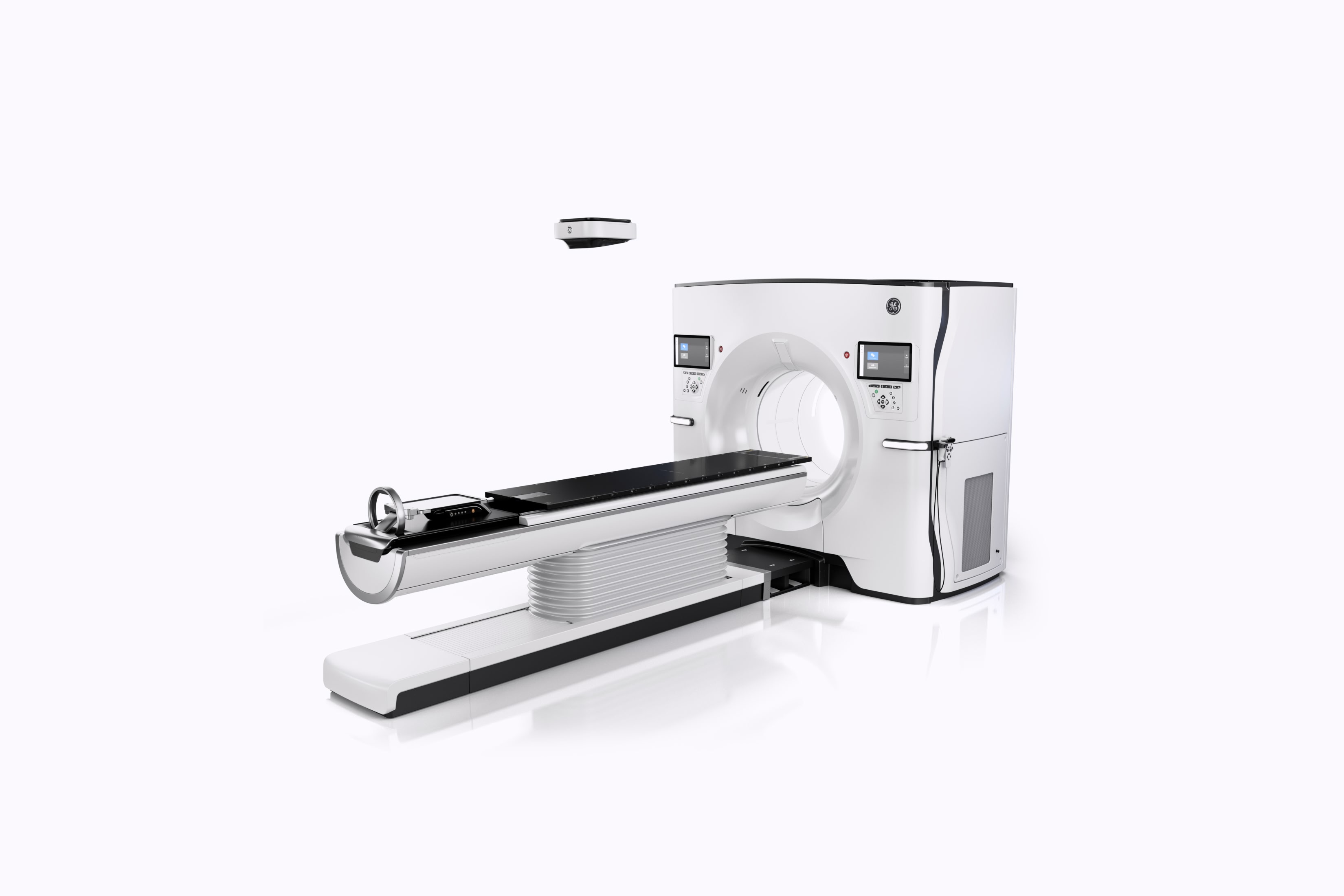 2. По сравнению с КТ-системами GE HealthCare предыдущего поколения. 3. Больше места в зоне между верхней частью отверстия гентри и центром поверхности деки при самом нижнем положении стола.